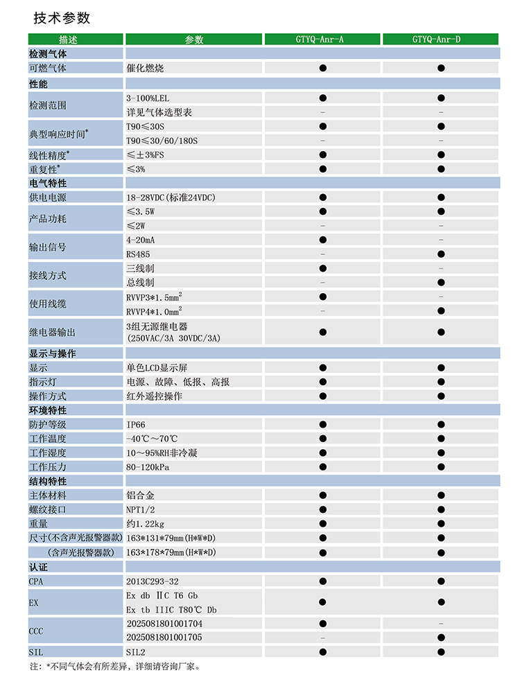GTYQ-Anr-A/GTYQ-Anr-D型氣體檢測(cè)變送器可檢測(cè)可燃?xì)猓纾簹錃猓℉2)、甲烷(CH4)、天然氣等。
